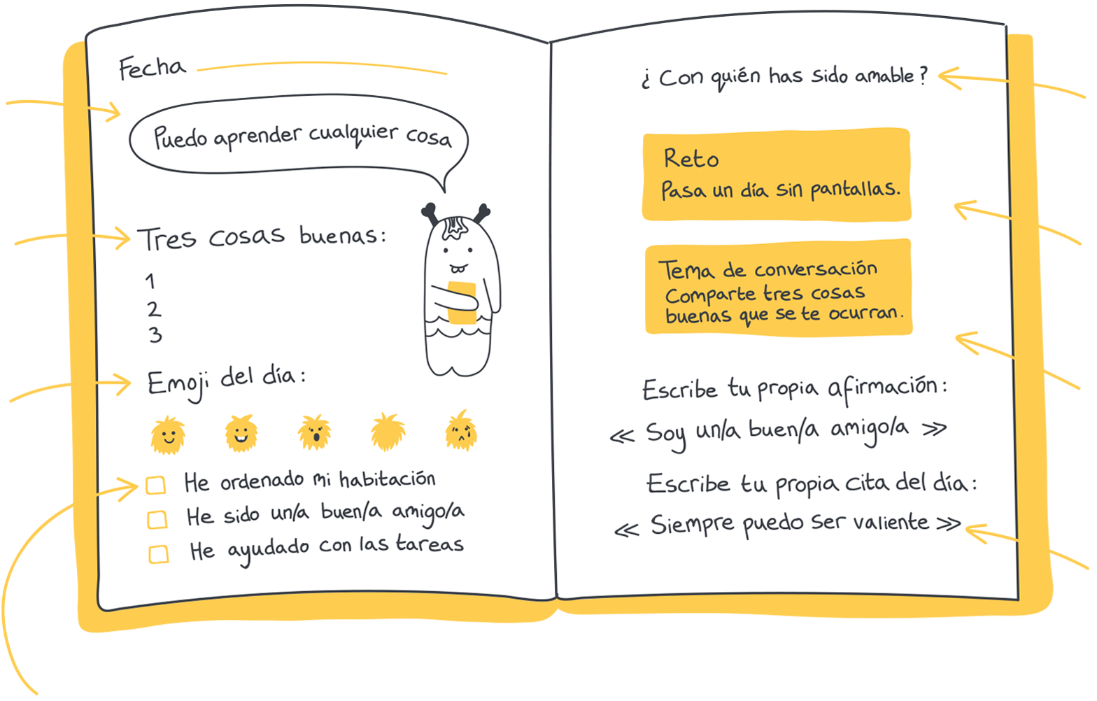 Estas pequeñas listas ayudan a recordar pequeños momentos que favorecen el desarrollo de una mentalidad de crecimiento, a la vez que promueven la amabilidad, la amistad y la autoconciencia